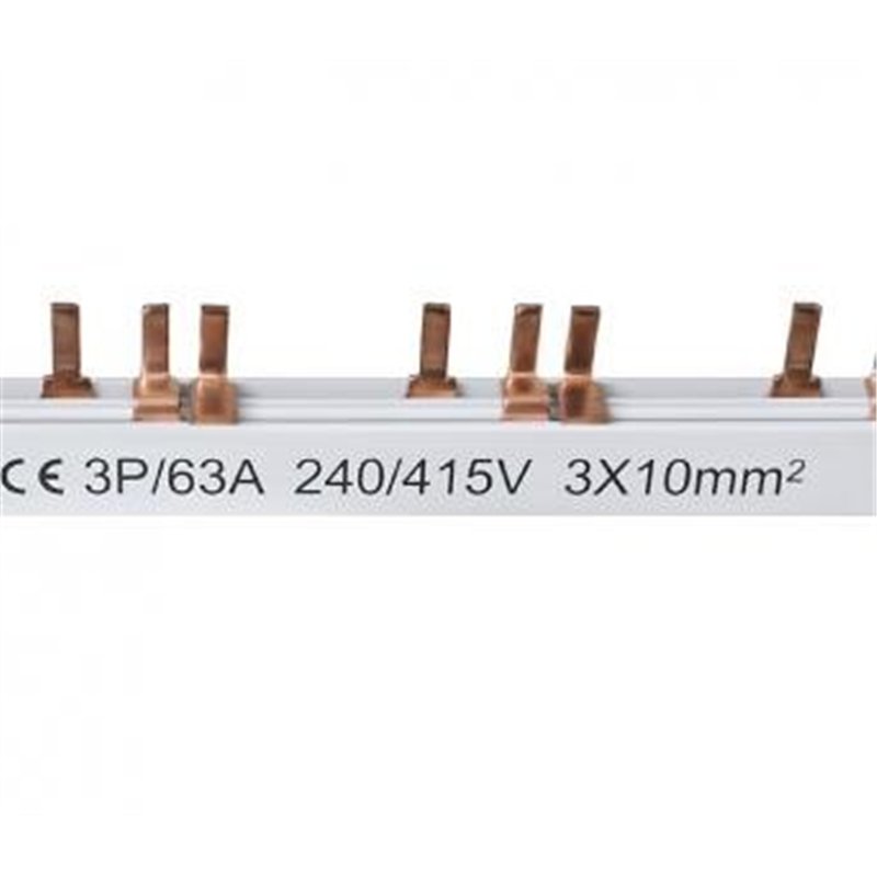 Bakarni češalj, 3 pina, 63A, za automatske osigurače obezbeđuje napajanje za grupu prekidača. Takođe, obezbeđuje istovremeno napajanje. Provodnički deo je od elektrotehničkog bakra.