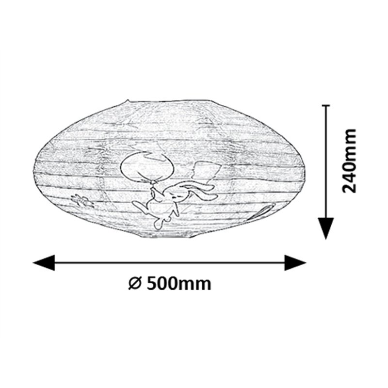 Rabalux Hopply papirna dečija plafonska lampa je model koji je samostalno dizajnirao Rabalux. Preporučuje se onima koji žele da učine dečiju sobu još prijatnijom uz slatke, vesele motive. Lampa ima spljošten, zaobljen oblik, izrađena je od papira i ukrašena divnim motivom zeca i balona koji će sigurno osvojiti srce deteta koje boravi u sobi. Pretežne boje motiva su narandžasta, braon i sivkaste nijanse, koje su prijatne i umirujuće za oči, i zrače toplinom. Dečija lampa može se koristiti sa jednom sijalicom snage do 40 W. Ako želite da pojačate prijatnu, intimnu atmosferu, odaberite sijalicu koja emituje toplo belo svetlo. Dečija plafonska lampa se isporučuje bez grla i izvora svetlosti.