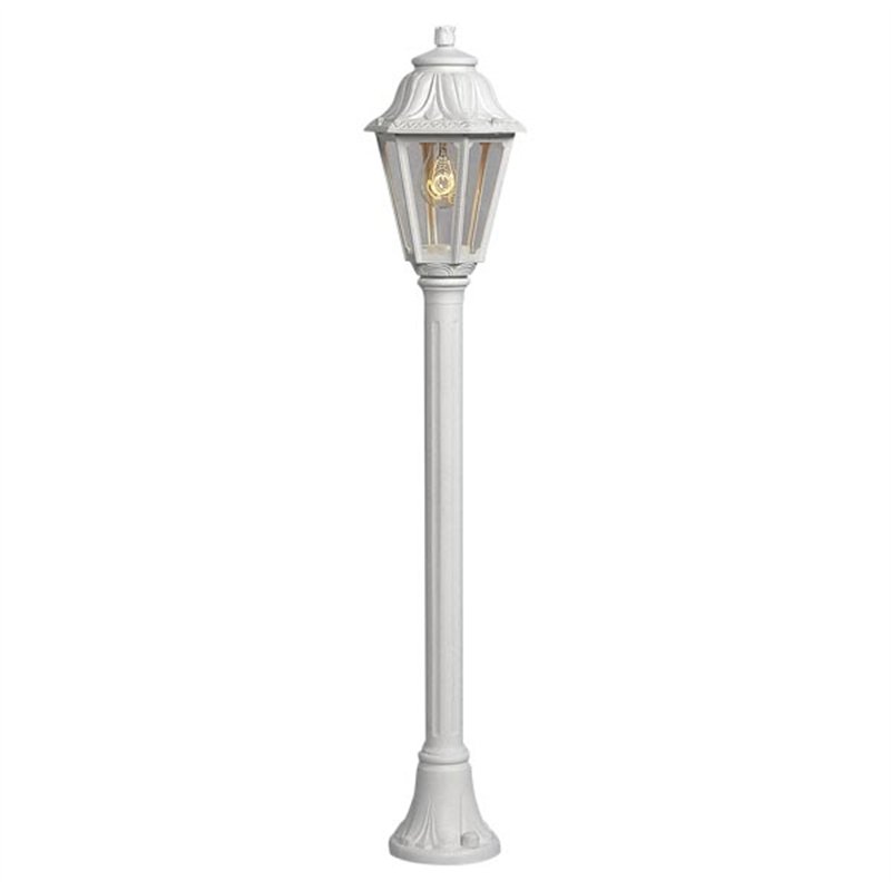 Stubni fenjer FUMAGALLI MIZZAR-ANNA WH je vintage,retro izgleda, šestougaonog je oblika i predviđen za spoljnu upotrebu. Ima standardno porcelansko sijalično grlo, tip grla E27, jačina sijalice je Max. 60W. Baštenski stubni fenjer FUMAGALLI MIKROLOT-ANNA WH je napravljen je od materijala otpornog na udarce, UV zrake, rđu i koroziju.. Pravo estetsko i funkcionalno rešenje za osvetljenje Vašeg dvorišta ili kućnog prilaza.