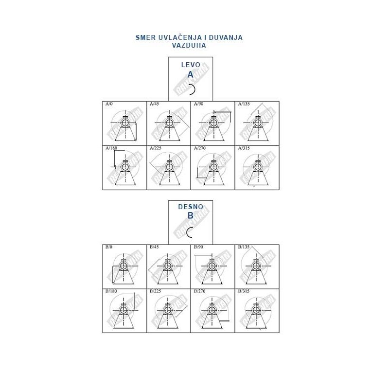 Kućište je napravljeno od visoko kvalitetnog pocinkovanog čeličnog lima otpornog na koroziju. Elise su sastavljene od nagnutih unazad i retko poređanih peraja. Imaju asinhroni motor i omogućuju protok vazduha temperature do 120°C. Zahvaljujući sistemu zavrtnja okvir se može lako postaviti u željeni položaj. Obezbeđuje visoku brzinu protoka vazduha pri nominalnim statičkim pritiscima. Zahvaljujući aerodinamičkoj konstrukciji elisa imaju tih rad.