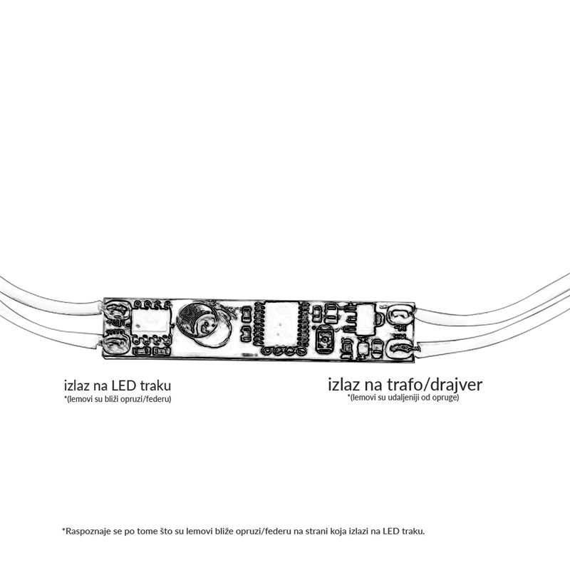 Senzor, led prekidač za dimovanje LED trake pomoću dodira (touch funkcija). Dodirom na kraj profila rasveta se uključuje / isključuje, a zadržavanjem dodira se vrši dimovanje. Ugrađuje se u LED profil.