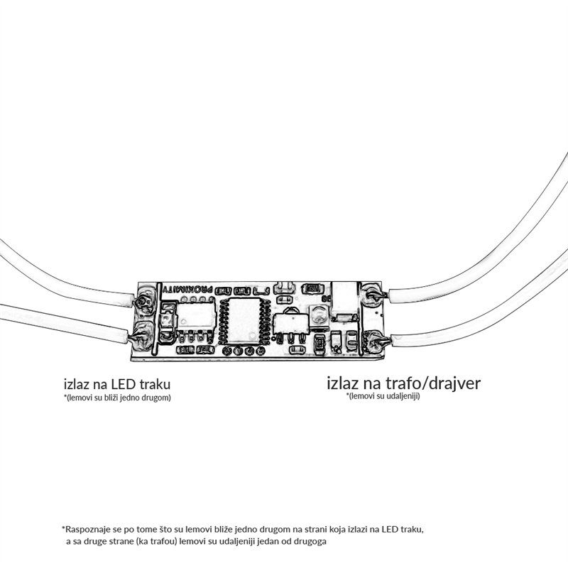 Senzor, led prekidač za dimovanje LED trake pokretom ruke. Pomeranjem, prelaskom ruke preko senzora, rasveta se uključuje / isključuje, a zadržavanjem ruke nad senzorom se vrši dimovanje.