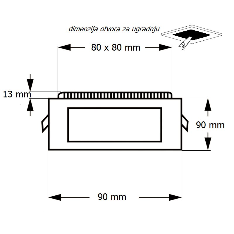 LED panel za ugradnju u spuštene plafone, snage 3W sa prirodno belom bojom svetla.