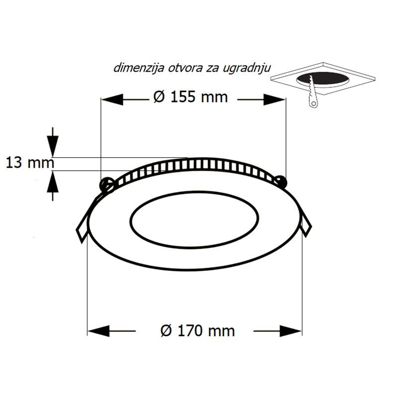 LED panel za ugradnju u spuštene plafone, snage 12W sa hladno belom bojom svetla. Panel ima beli ram, vrhunsku završnu obradu, perfektno raspoređene diode bez tamnih tačaka.