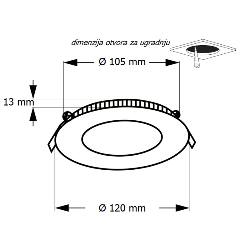 LED panel za ugradnju u spuštene plafone, snage 6W sa prirodno belom bojom svetla. Panel ima beli ram, vrhunsku završnu obradu, perfektno raspoređene diode bez tamnih tačaka.