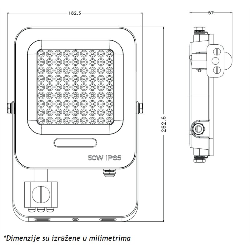 LensLux led reflektor sa senzorom, snage 50W, 6500K, 4500 lm, sa IP65 zaštitom.