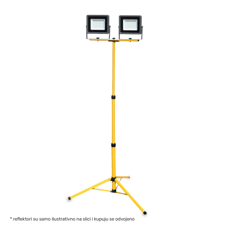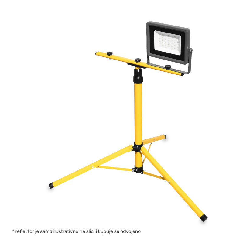 Prenosivi stalak za reflektore žute boje. Proizvod je namenjen majstorima i hobistima. Jednostavno montiranje i podešavanje željene visine