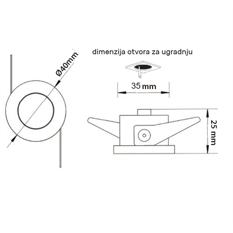 Ugradna LED rozetna crne boje, snage 3w i sa prirodno belom bojom svetla.