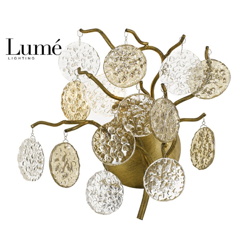 Zidna svetiljka ekskluzivnog izgleda sa bazom u boji starog zlata i imitacijom grana na drvetu. Ova zidna lampa poseduje dva sijalična grla, tip G9 i staklene delove izrađene od mutnog reljefnog stakla radi efektnijeg doživljaja svetlosti.