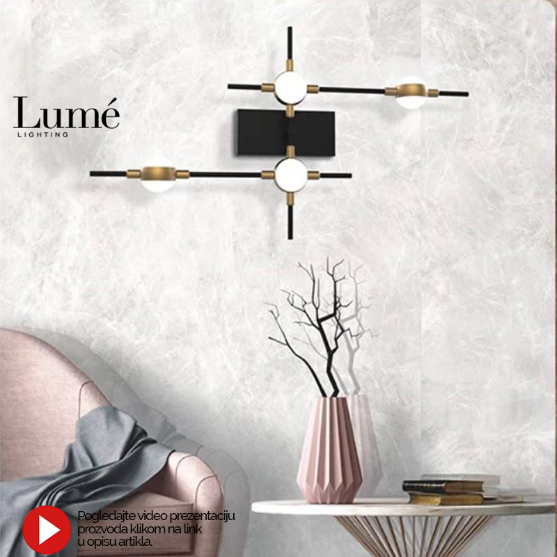 Zidna lampa Vesta 396 je iz Lume molekularne kolekcije koja inspiraciju pronalazi u hemiji i vezi između molekula. Elegantne konstrukcije sa kombinacijom crne i zlatne boje, ova lampa će pronaći svoje mesto u različitim okruženjima i naglastiti ono što želite da istaknete. Pored jedinstvenog i prefinjenog dizajna, ova lampa emituje i značajnu količinu svetla.