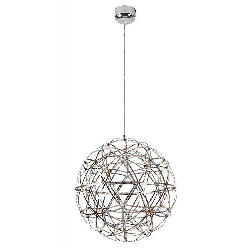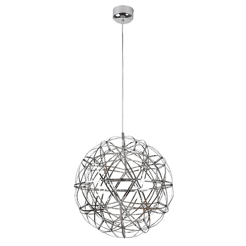 Moderan, podesiv Eudora privezak se prvenstveno preporučuje u dnevnoj ili spavaćoj sobi. Lampa hromirane boje je napravljena od nerđajućeg čelika, dok je materijal njenog abažura sa rešetkama metal. Svetlo se može pričvrstiti na plafon uz pomoć male, okrugle ukrasne osnove. Ovaj zvezdani model uglavnom podseća na džinovsku božićnu loptu koja svojim laganim i sjajnim izgledom naše večeri pretvara u svečanu priliku. Eudora ima ugrađeni LED izvor svetlosti energetske klase G sa snagom od 12 V, svetlosnim fluksom od 650 lumena sa senkom i 780 lumena bez senke, i izuzetno dugim životnim vekom od 36.000 sati! Izvor svetlosti ima temperaturu boje od 3000 K i zrači toplo belo svetlo koje vam pomaže da stvorite ugodnu, intimnu atmosferu, opuštajuće je za vaše oči i idealno za odmor i opuštanje. Dimenzije Eudora visećeg svetla su sledeće: prečnik 500 mm, prečnik ugradnje 110 mm, rastojanje od plafona se može podesiti između 1.000–1.500 mm.