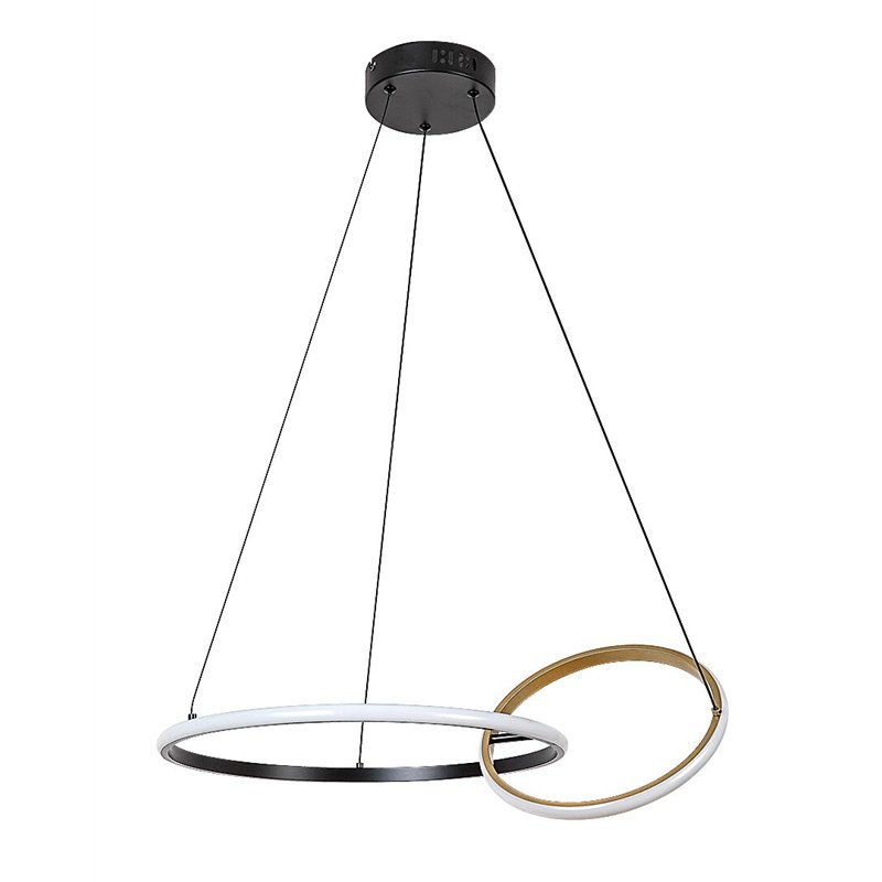 Viseća lampa Rabaluk Emilion sa 2 sijalice je idealan izbor ako tražite model koji privlači poglede sa kreativnim dizajnom koji takođe pruža neophodnu osvetljenost. Metalna armatura je izrađena u elegantnoj crno-zlatnoj kombinaciji boja, dok je bela nijansa sastavljena od silikona. Dva međusobno povezana prstena različitih prečnika stvaraju zaista privlačan dizajn. Visina privezka je podesiva, tako da se dobro prilagođava specifičnim karakteristikama prostorije. Možete ga ugraditi u dnevnu sobu, trpezariju ili spavaću sobu, gde njegov značajan intenzitet svetlosti obezbeđuje neophodno osvetljenje, a prirodno belo svetlo pojačava moderan, čist efekat. Lampa ima integrisanu LED tehnologiju koja garantuje energetski efikasan rad i dug životni vek.