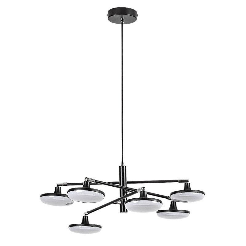 Sa svojim značajnim svetlosnim tokom i estetskim izgledom, moderan Madi privezak sa 6 sijalica je odličan izbor za prostraniji dnevni boravak ili trpezariju. Mat crni metalni pribor upotpunjen je belim plastičnim abažurima, a lampa se može pričvrstiti na plafon uz pomoć malog, okruglog ukrasnog postolja. Šest fleksibilnih glava sijalica postavljeno je na krajeve horizontalnih potpornih šipki koje se ukrštaju koje su pričvršćene za cilindrični element pričvršćen za kabl. Plafonska lampa u celini ima oblik cveta. Madi ima ugrađene LED izvore svetlosti energetske klase F snage 24 V, svetlosnog toka od 2.350 lumena sa senkom i 3.000 lumena bez senke, i životnog veka od 30.000 sati. Temperatura boje izvora svetlosti je 3.000 K i zrače toplo belo svetlo koje vam pomaže da stvorite ugodnu, intimnu atmosferu i opuštajuće za vaše oči. Dimenzije Madi viseće lampe sa 6 sijalica su sledeće: prečnik 600 mm, rastojanje od plafona se može podesiti između 800-1.500 mm, prečnik svakog abažura 120 mm, prečnik ugradnje sijalice 100 mm.