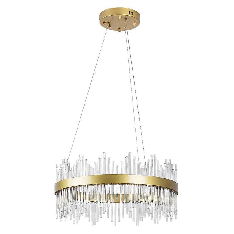 Pametni privezak Mabel u klasičnom stilu nudi spektakularno rešenje za osvetljenje u dnevnoj ili spavaćoj sobi. Uglavnom ga preporučujemo onima koji vole plafonske lampe koje su ukrašenije i upadljivije i koji traže model sa velikim svetlosnim tokom. Metalna lampa zlatne boje upotpunjena je providnim staklenim abažurom, a može se pričvrstiti na plafon uz pomoć okruglog ukrasnog postolja. Zvezdani privezak je sastavljen od prstenastog elementa zlatne boje i cilindričnih delova koji vire iz njega nagore-nadole i podsećaju na blistave ledenice. Mabel ima ugrađeni LED izvor svetlosti energetske klase G sa snagom od 36 V, svetlosnim fluksom od 2.480 lumena sa senkom i 2.700 lumena bez senke, i životnim vekom od 36.000 sati. Temperatura boje sijalice može se podesiti pomoću zidnog prekidača. možete podesiti 3.000, 4.000 ili 6.000 K, odnosno toplo, prirodno ili hladno belo svetlo. Dimenzije pametne viseće lampe su sledeće: prečnik 580 mm, prečnik ugradnje 200 mm, rastojanje od plafona se može podesiti između 500–1.000 mm.
