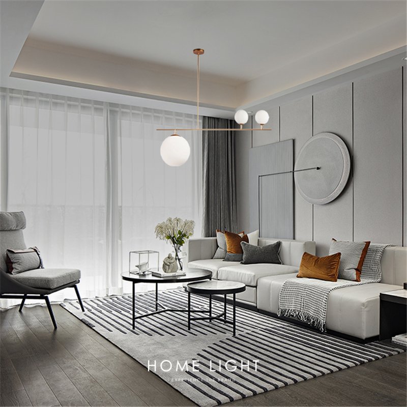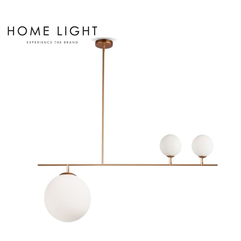 Luster u moderno minimalističkom izdanju. Metalni delovi u boji mesinga, sa tri mlečne staklene kugle. Jedna kugla je sa E27 tipom grla, a preostale dve sa G9 tipom grla.