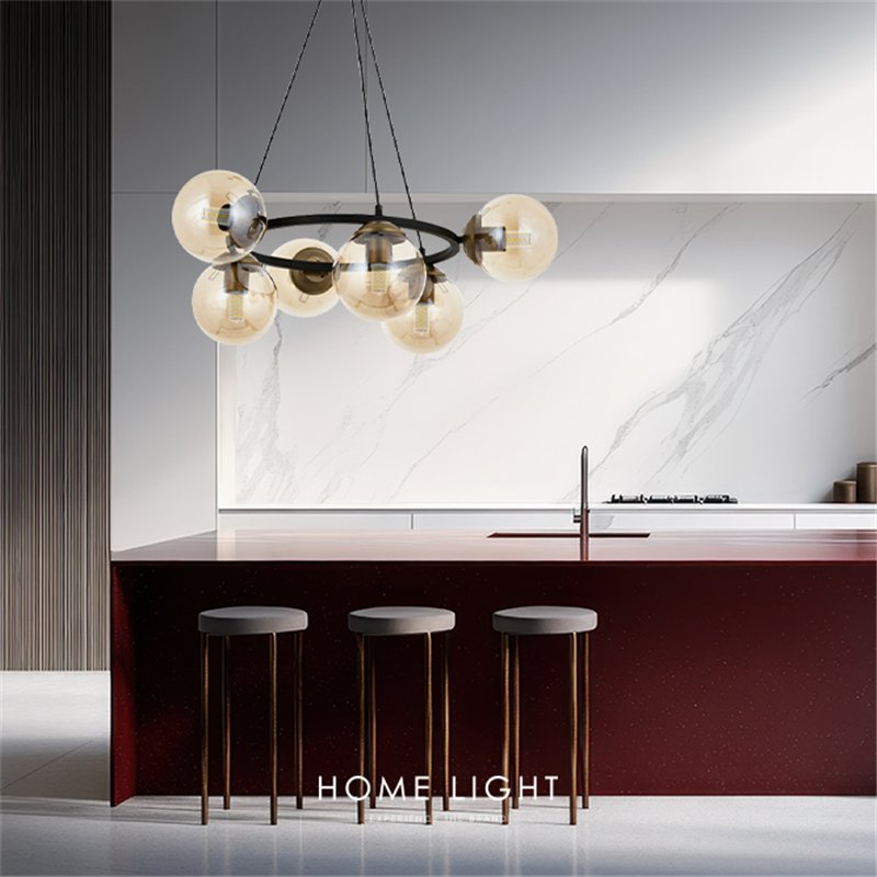 ELINA 11800 - luster dizajniran tako da u svakom postoru bude primećen njegov elegantan dizajn i dekoratvno i funkcionalno osvetljenje koje dolazi iz spiralno, kružno raspoređenih staklenih kugli u boji konjaka.