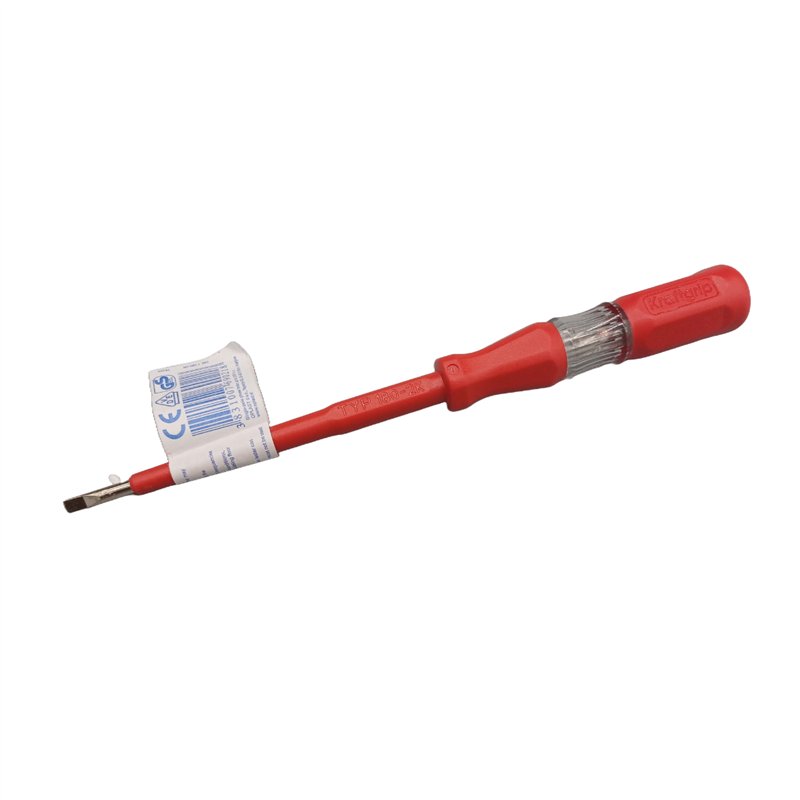 Crvena glinerina dužine 180 mm. Indikator napona je pogodan za upotrebu samo na nominalnom naponu koji je naveden na testeru između 50Hz do 500Hz i između -10°C do+ 50°C. Kod testiranja napona dodirnite metalni deo na vrhu testera i stavite tester u strujno kolo. Test pre upotrebe; ne koristite u vlažnim uslovima; koristite samo kao tester napona a ne kao odvijač.