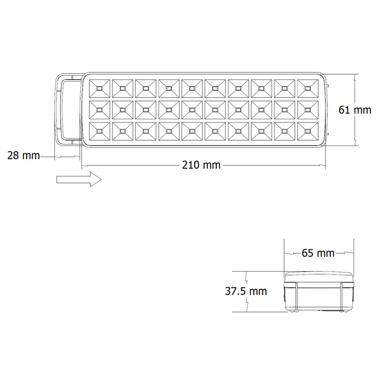 - 210 x 61 x 37.5 mm