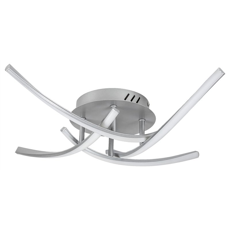 Plafonjeru TATJANA sa 4 sijalice preporučujemo prvenstveno onima koji traže modernu lampu čistog dizajna u svojoj dnevnoj ili spavaćoj sobi. Ovaj metalni model srebrne boje može se pričvrstiti na plafon uz pomoć okrugle ukrasne osnove. Plastični abažuri su beli. TATJANA plafonjeru karakterišu četiri lučna elementa koji strše u različitim pravcima. Lampa sadrži ugrađeni LED izvor svetlosti snage 30W, svetlosnog toka od 1.950 lumena, životnog veka od 15.000 sati i temperature boje od 4.000 K. Ovaj model emituje prirodno belo svetlo i ima sledeće dimenzije : prečnik 620 mm, rastojanje od plafona 105 mm, prečnik ugradnje 160 mm.
