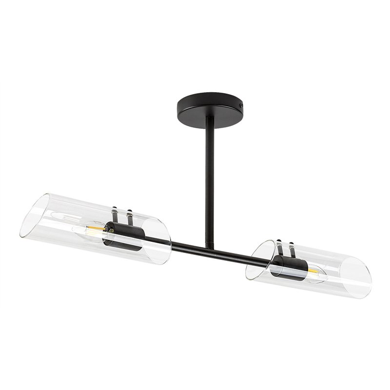 Sa svojim jedinstvenim dizajnom Teodoro plafonska lampa za kupatilo može biti moderan komad nameštaja u vašem modernom kupatilu. Metalna lampa crne boje sastoji se od elementa u obliku slova T pričvršćenog za malu, okruglu dekorativnu osnovu i od glava lampe pričvršćenih za gore pomenuti element. Cilindrični abažuri sa šalovima su napravljeni od stakla pa je dobro koristiti ovaj model sa estetskim sijalicama nekonvencionalnog oblika. Teodoro može da radi sa dve sijalice, svaka snage do 12 V. Tip grla je E14. Ako želite da postignete moderan, čist efekat u kupatilu, koristite ovu lampu sa sijalicama koje zrače prirodno belo svetlo. Teodoro IP44 zaštita obezbeđuje da ovaj model bude zaštićen od prodora čvrstih čestica prečnika od 1 mm ili više i od prskanja vode iz bilo kog smera. Širina lampe je 730 mm, rastojanje od plafona 320 mm, prečnik ugradnje 120 mm, prečnik svakog abažura 80 mm, njihova dužina 270 mm. Ovaj model se isporučuje bez izvora svetlosti.