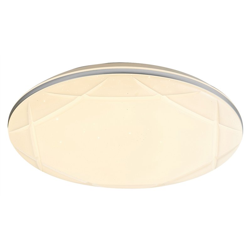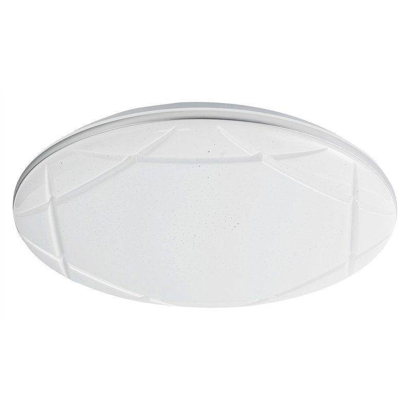 Moderna, okrugla plafonska lampa Osvald 2 preporučuje se za dnevnu sobu, spavaću sobu ili radnu sobu. Metalni element srebrne boje upotpunjen je belim plastičnim abažurom čiji je izgled zanimljivijim diskretnim uzorkom i zvezdanim efektom. Veliki Osvald 2 ima ugrađen LED izvor svetlosti energetske klase G snage 24 V, dok lampa ima svetlosni tok od 1.800 lumena sa senkom i 2.400 lumena bez senke. Temperatura boje izvora svetlosti je 4.000 K, odnosno zrači prirodno belo svetlo, pa je ovaj model idealan izbor ako želite da postignete čist, moderan efekat u prostoriji. Osvald 2 se toplo preporučuje svima koji žele da izaberu plafonsko svetlo sa dugim vekom trajanja: ovaj model obezbeđuje osvetljenje prostorije ne manje od 50.000 sati, tako da možete zaboraviti na zamenu lampe na dugi niz godina. Prečnik Osvalda 2 je 400 mm, udaljenost od plafona je 70 mm.