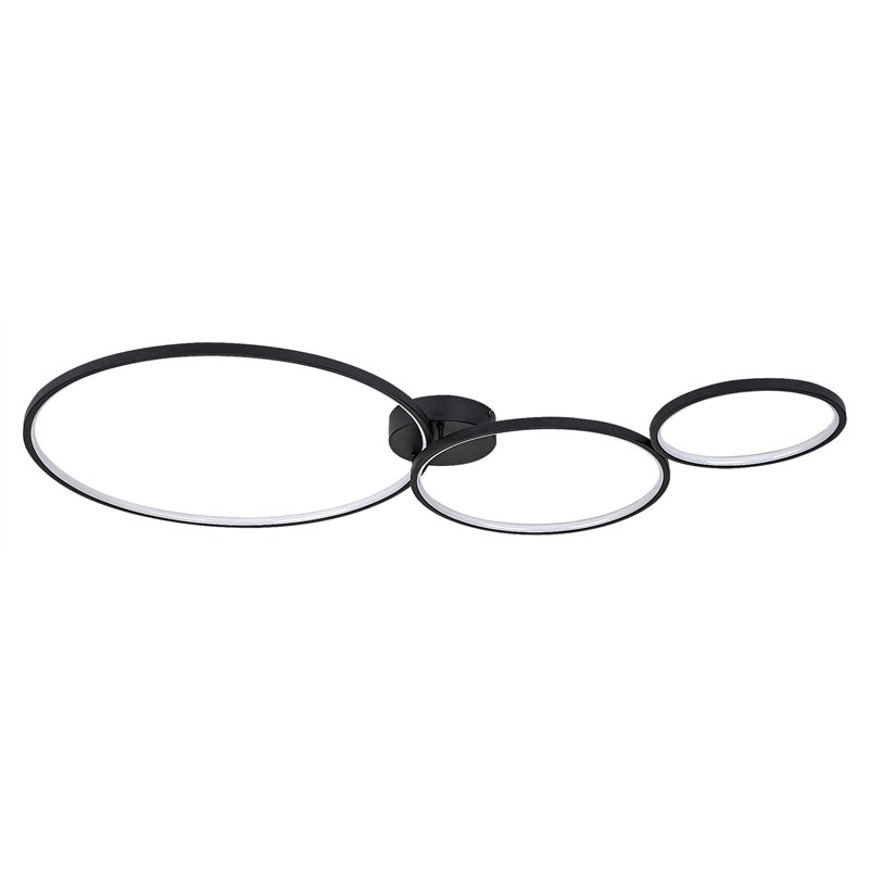 Rabaluk Formand plafonska lampa preporučuje se onima koji traže moderan stil, upadljiv model koji je takođe dobar izbor u pogledu funkcionalnosti. Izgled LED lampe je jedinstven zbog tri međusobno povezana okrugla elementa različitih prečnika. Svi su izrađeni od metala u elegantnoj crnoj boji, dok su senke od bele plastike. Ugrađeni LED izvor svetlosti emituje toplu belu svetlost koja stvara ugodnu, domaću atmosferu. Ovaj model se može pohvaliti kreativnim dizajnom, a idealan je za dnevni boravak, trpezariju ili spavaću sobu. Zahvaljujući velikoj veličini, posebno je pogodan za veće prostorije. Zahvaljujući integrisanoj LED tehnologiji, plafonsko svetlo se odlikuje uštedom energije i izuzetnim životnim vekom.