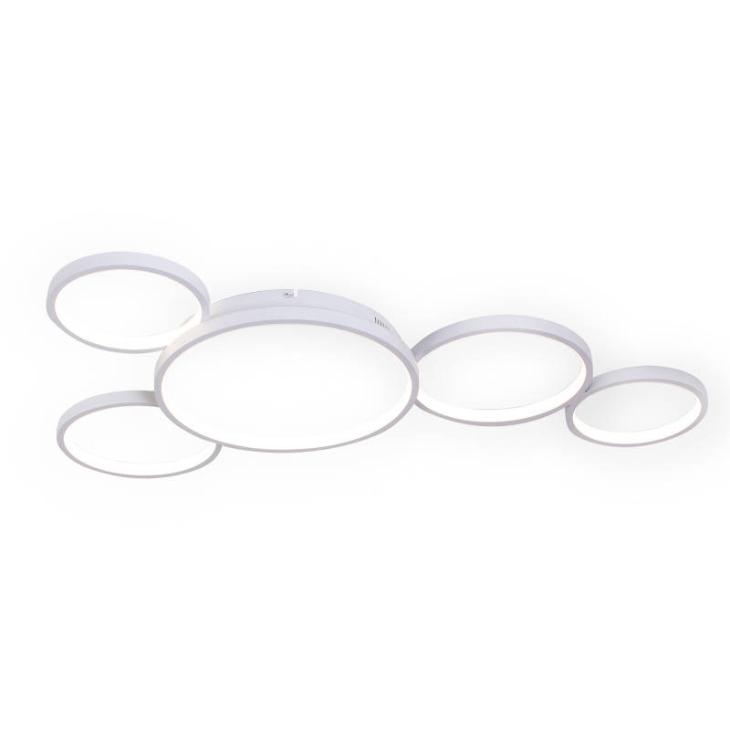 Moderna LED plafonjera velike snage - 65w, u crnoj boji. Sastavljena od 5 krugova sa interisanim led diodama i svetli toplo belom bojom svetla. Dekorativnog i privlačnog, modernog dizajna, ova plafonska svetiiljka dodaće prostoru osim adekvatnog osvetljenja i dozu stila i elegancije.