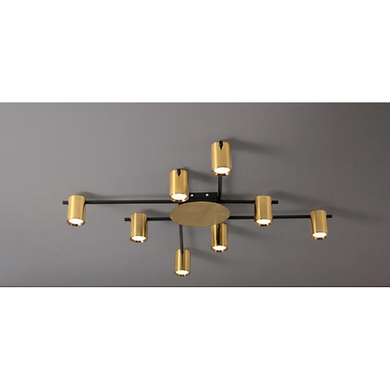 Plafonska svetiljka modernog izgleda u crno-zlatnoj boji sa 8 sijačnih grla tipa GU10.