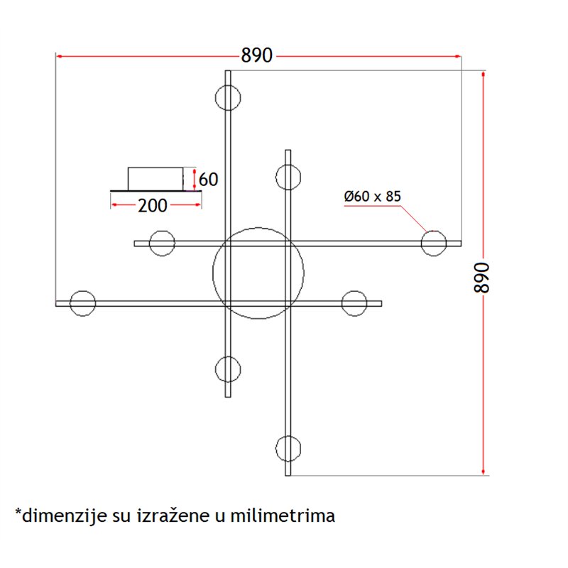 - 890 x 890 mm; Visina - 120 mm