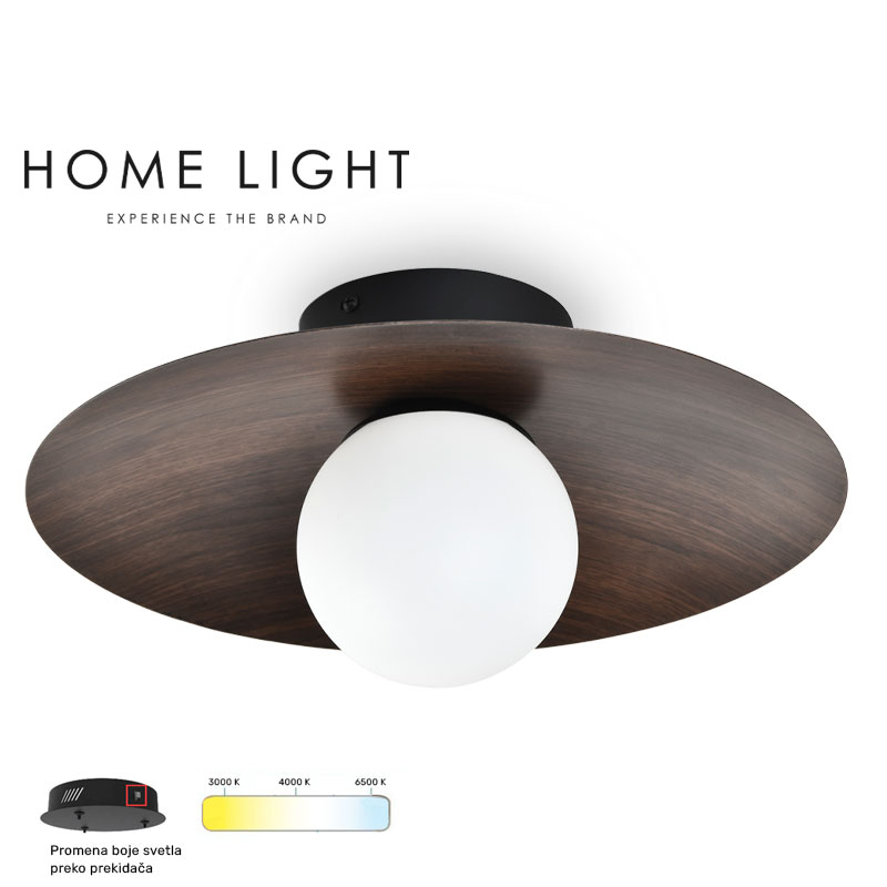 Vesta 535 - LED plafonjera u kombinaciji boja tamno drvo/crna, snage 8W, jedinstvenog,nebičnog i modernog dizajna sa prekidačem putem koga birate i menjate boju osvetljenja između tri boje svetla.