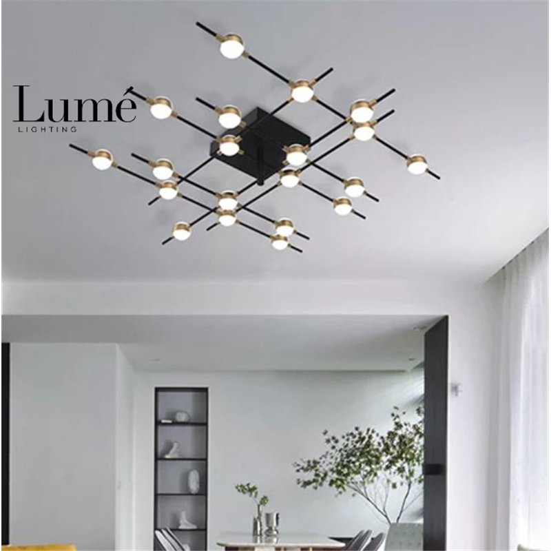 Moderna i savremena plafonska rasveta, plafonjera snage 48w. Izrađena je od laganih materijala, kombinacija metala i akrila. Emituje toplo belu svetlost iz kugli prečnika 50 mm. Ova plafonjera je dovoljno jaka da osvetli i prostorije veće kvadrature. Lako se uklapa u bilo koje savremeno opremljene enterijere i kombinuje sa ostalim proizvodima iz ove linije proizvoda.