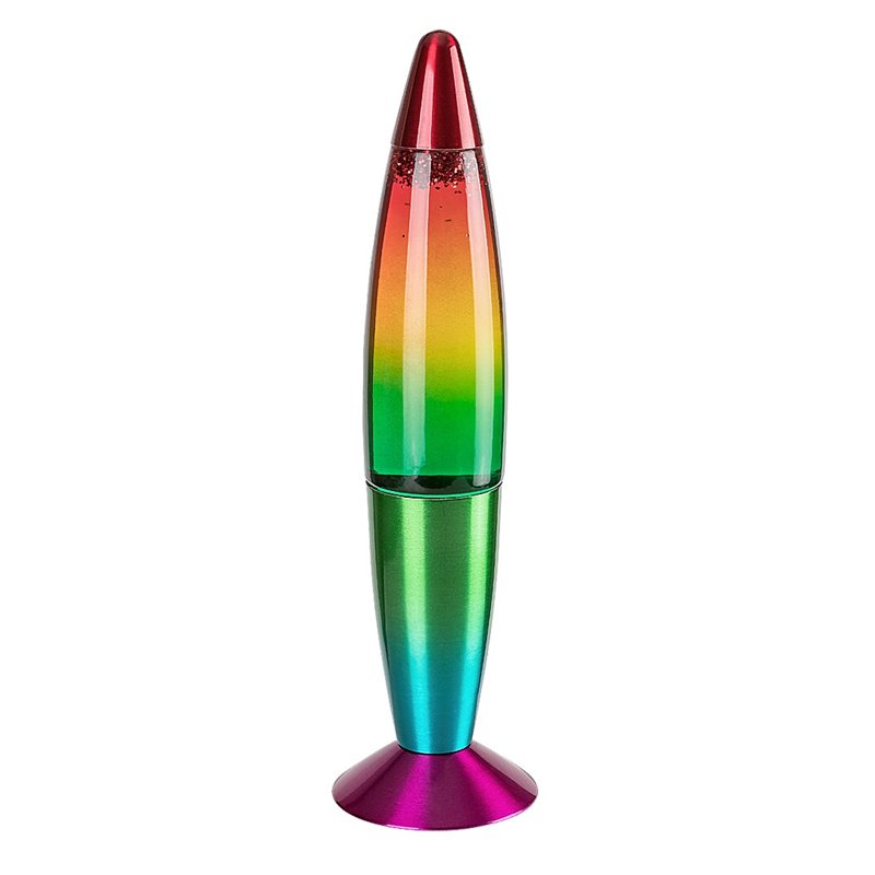 Rabalux Glitter Rainbow 2 dizajnerska lampa preporučuje se onima koji pridaju veliki značaj prijatnom osvetljenju u svom domu. Spektakularna lava lampa ima prepoznatljiv oblik koji podseća na raketu. Postolje i dekorativna baza su izrađeni od metala i oba su u duginim bojama. Unutrašnjost stone lampe ispunjena je providnom tečnošću i srebrnim mikacijskim česticama. Ove čestice su obojene abažurom, što ovom modelu daje magičan izgled. Dekorativna lampa se upravlja kablovskim prekidačem i ima ugrađeni LED izvor svetlosti koji garantuje dug vek trajanja. Ovo svetlucavo dekorativno svetlo sigurno će postati omiljeno među svim članovima porodice, tako da je zaista korisno što ga možete lako premestiti iz jedne prostorije u drugu. Idealna je za dnevnu sobu, dečiju sobu ili spavaću sobu.