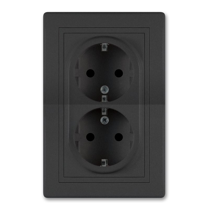 604.E1E1 Priključnica dvop. PRESTIGE dupla sa plast. telom, crna soft
