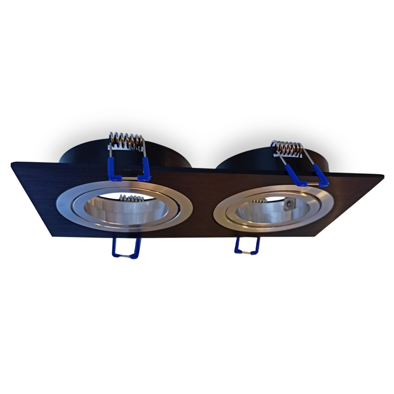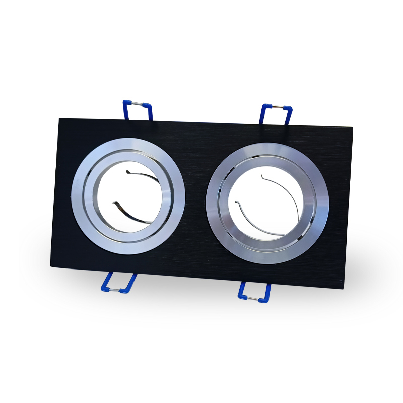 Rozetna za ugradnju u spuštene plafone ili police, u crnoj boji baze sa hromiranim okvirom oko otvora za sijalice.