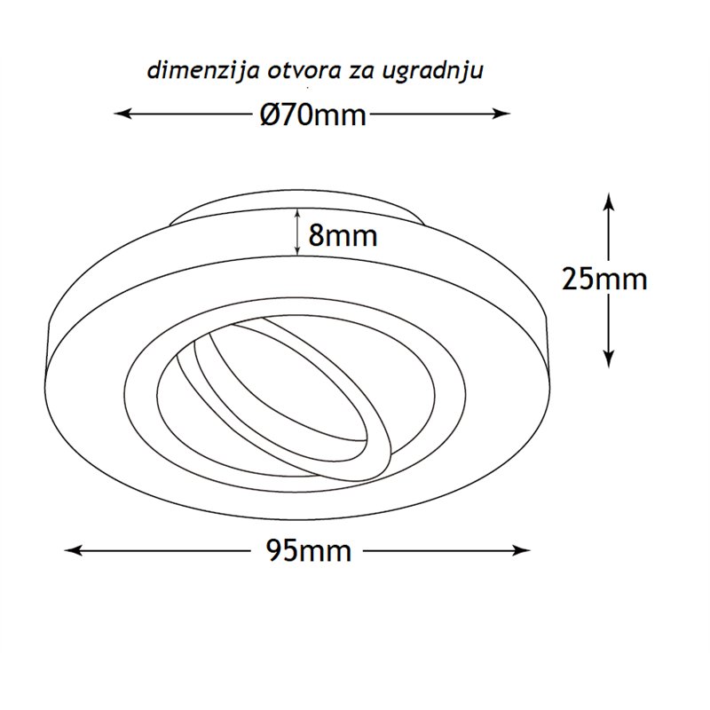 Okrugla rozetna hromiranog izgleda sa kristalnim delovima. Debljina stakla-kristala 8 mm. Preporučena snaga sijalice *(ukoliko je halogena) max.50 W.