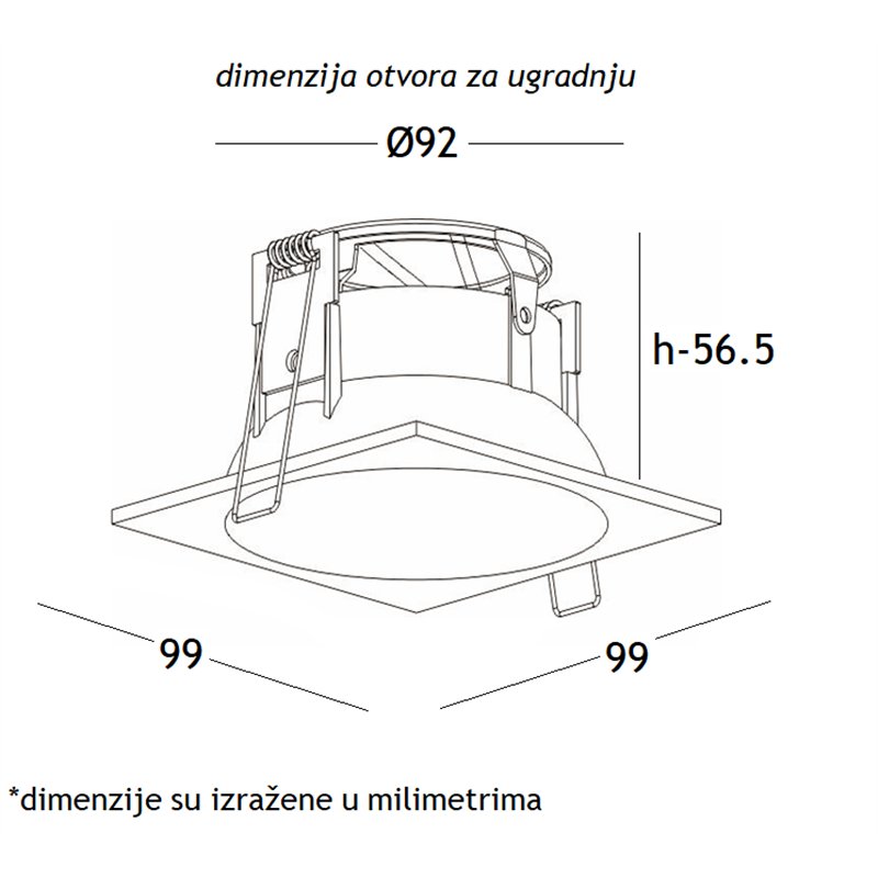 Kvadratna rozetna u beloj boji, odličnog kvaliteta izrade sa mogućnošću podešavanja ugla svetlosti. Koristi jedno sijalično grlo tip GU10.