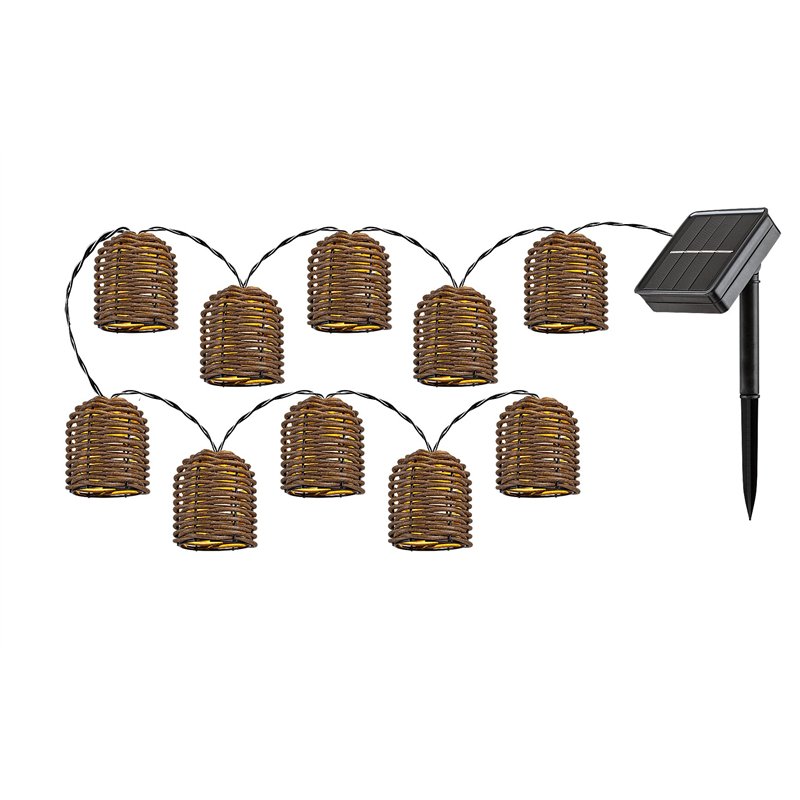 Sa svojim tropskim stilom, Rupit solarno spoljno dekorativno svetlo može biti udoban dodatak vašoj terasi ili bašti. Ovaj crni model je u potpunosti napravljen od plastike i ima senzor svetlosti. 10 glava sijalica u seriji prekrivene su abažurima prirodnog izgleda. Ugrađeni LED izvori svetlosti imaju ukupnu snagu od 0,6 V, svetlosni tok od 5 lumena sa senkom i 10 lumena bez senke, i životni vek od 10.000 sati. Sijalice emituju toplu belu svetlost i imaju temperaturu boje od 3000 K. Svetlosni senzor ovog ukrasnog svetla prilagođava osvetljenost u skladu sa okolnostima. Rupitova baterija ima napon od 1,2 V i kapacitet od 600 mAh. Lampa ima sledeće dimenzije: ukupna dužina 3.000 mm, visina svake glave sijalice 65 mm, prečnik svake glave sijalice 60 mm, dužina kabla 2.000 mm. Zaštita IP44 osigurava da je zaštićen od prodora čvrstih čestica prečnika od 1 mm ili više i od prskanja vode iz bilo kog pravca. Idealan opseg radne temperature Rupita je -10 do 60 °C.