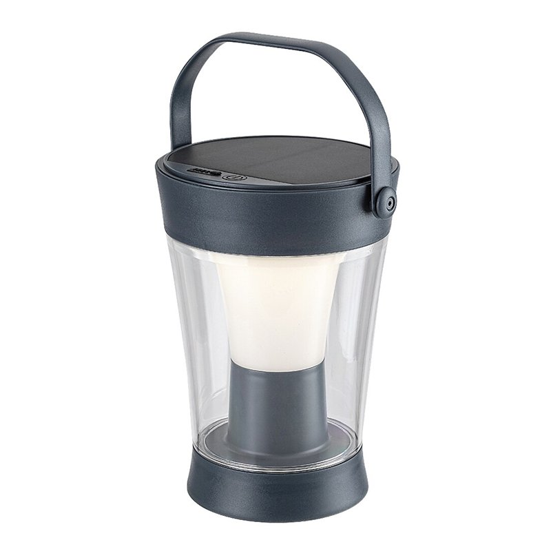 Moderno solarno spoljno svetlo Angers nudi nekoliko dodatnih karakteristika i može se postaviti na terasu ili u baštu. Ovaj sivi, potpuno plastični pametni model upotpunjen je providnim abažurom, okruglom ukrasnom postoljem i praktičnim rukohvatom. Angers ima ugrađen LED izvor svetlosti snage 3 V, svetlosnog toka od 300 lumena sa senkom i 450 lumena bez senke i životnog veka od 15.000 sati. Izvor svetlosti ima temperaturu boje od 4000 K i shodno tome zrači prirodno belo svetlo. Lampa je takođe sposobna za RGB osvetljenje i može se puniti preko USB kabla. Dužina kabla je 1.000 mm. Zahvaljujući ugrađenom senzoru, osvetljenost lampe se podešava u skladu sa okolnostima, a istovremeno se lampa može zatamniti, odnosno možete regulisati njenu osvetljenost pomoću prekidača. Baterija ima napon od 3,7 V i kapacitet od 2.000 mAh. Širina Angera je 240 mm, prečnik je 120 mm. Zaštita IP54 osigurava da je zaštićen od prašine i prskanja vode iz svih pravaca. Njegov idealan opseg radne temperature je -10 °C do 40 °C.