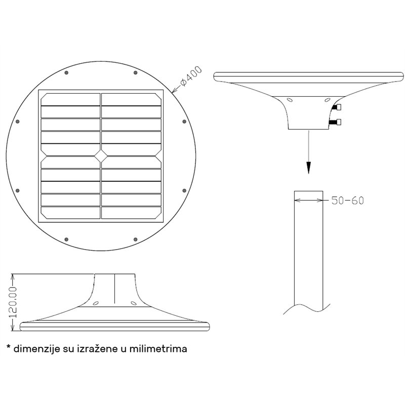 - Solarni panel: Monokristalni panel za efikasno prikupljanje sunčeve energije.
