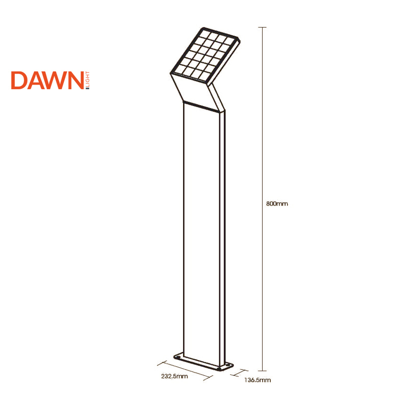 Solarna stubna svetiljka, snage 3w. Ova solarna lampa emituje prirodno belo svetlo, poseduje solarni panel snage 1.8W/5.5V od mono kristalnog silikona.