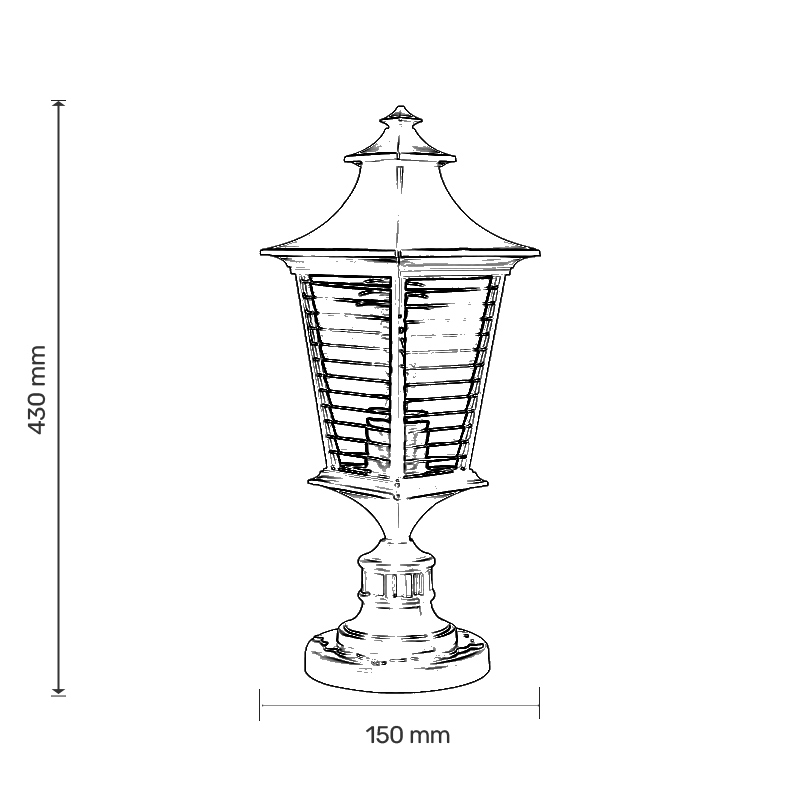 Stubni fenjer u crnoj boji sa sijaličnim grlom tip E27. Njegova svrha je kako da osvetli prostor spolja, tako i da stvori noću posebno prijatnu atmosferu na Vašoj terasi, balkonu i ostalim spoljnim delovima kuće ili poslovnog objekta.