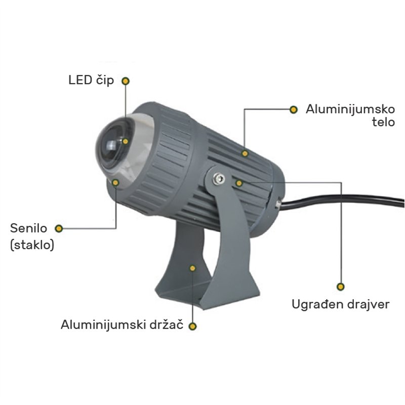 Energetski efikasna LED svetiljka sa aluminijumskom kućištem, napon 230V i svetlom od 4000K, idealna za precizno osvetljavanje. Sa uglom snopa od 5 stepeni i VDE sertifikovanim kablom, pruža dugotrajan i pouzdan rad.