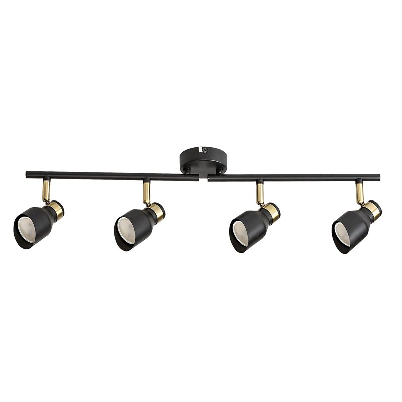 Moderna Lilou plafonska lampa sa 4 sijalice može biti dobar izbor u dnevnoj sobi, spavaćoj ili radnoj sobi. Mat crni potpuno metalni model upotpunjen je elementima zlatne boje, dajući ovoj lampi elegantan izgled. Lilou se može pričvrstiti na plafon uz pomoć male, okrugle ukrasne osnove. Glave lampe su postavljene jedna pored druge na horizontalnoj traci pričvršćenoj za dekorativnu osnovu. Glave lampe imaju cilindrične abažure koji su uvučeni i otvoreni na dnu, i fleksibilni su, tako da možete usmeriti njihovu svetlost po želji. Lilou se može koristiti sa četiri izvora svetlosti, svaki sa snagom do 25 V. Tip utičnice je GU10. U zavisnosti od vaših preferencija i prostorije u koju želite da instalirate lampu, možete odabrati izvore svetlosti koji zrače toplo ili prirodno belo svetlo. Dimenzije plafonske lampe Lilou sa 4 sijalice su sledeće: širina 700 mm, prečnik svakog abažura 55 mm, rastojanje lampe od plafona 180 mm, prečnik ugradnje 80 mm. Ovaj model se isporučuje bez izvora svetlosti.