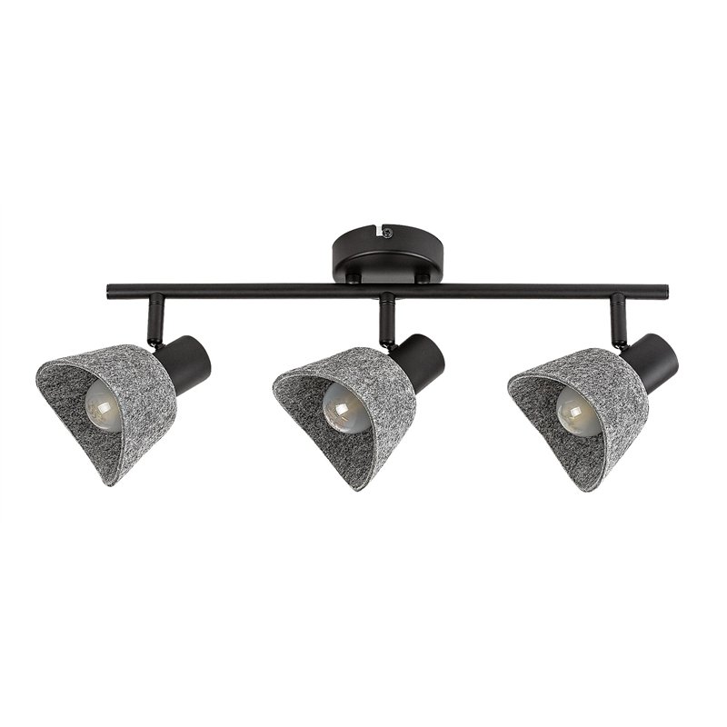 Rabalux Farelia 3-sijalice plafonska spot lampa se preporučuje onima koji vole svetla sa jedinstvenim izgledom koja doprinose prijatnoj atmosferi. Ovaj model je izrađen od metala u crnoj boji sa sivim filcanim senkama. Materijal od kojeg je senka napravljena je ekološki prihvatljiv, reciklirani materijal. Lampa se može pričvrstiti za plafon pomoću male okrugle dekorativne baze, na koju je pričvršćen dug cilindrični štap koji drži glave lampe. Zakrivljeni oblik senki u obliku zvona, u kombinaciji sa mekim filcanim materijalom, daje lampi prijatan, srdačan izgled. Idealna je za dnevnu sobu, spavaću sobu ili radnu sobu. Može se koristiti sa tri izvora svetlosti, svaki snage do 10 W. Tip grla je E14. Ova 3-sijalica spot lampa je izrađena sa praktičnim fleksibilnim glavama lampe. Lampa se isporučuje bez izvora svetlosti.