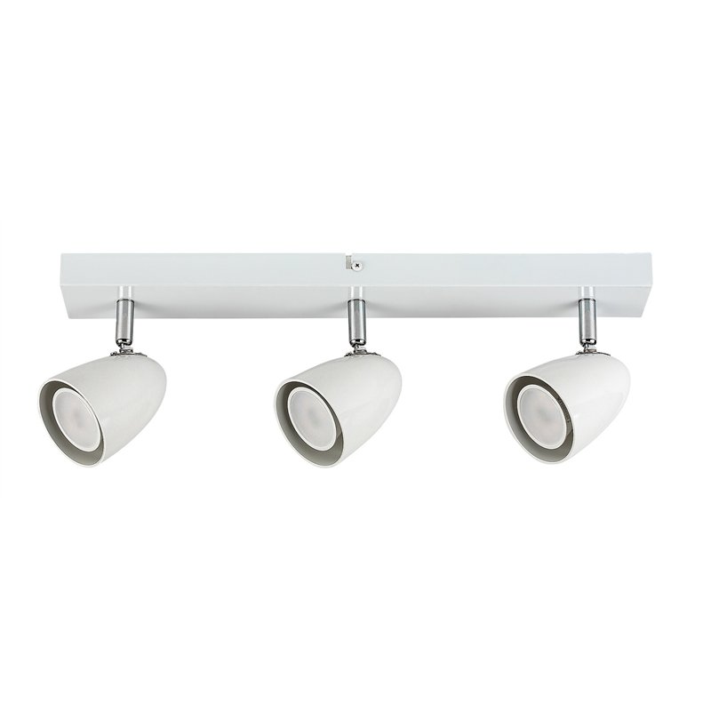 Moderno plafonsko svetlo Perico sa 3 sijalice prvenstveno se preporučuje u dnevnoj sobi, spavaćoj ili radnoj sobi. Metalna lampa bele boje upotpunjena je elegantnim belim plastičnim abažurima, a može se pričvrstiti na plafon uz pomoć dugačkog pravougaonog ukrasnog postolja. Fleksibilne glave lampe koje su postavljene jedna pored druge obezbeđuju efikasno osvetljenje prostorije. Perico se može koristiti sa tri sijalice, svaka snage do 5 V. Tip grla je GU10. U zavisnosti od vaših preferencija i prostorije u koju želite da instalirate lampu, možete odabrati izvore svetlosti koji zrače toplo ili prirodno belo svetlo. Ako želite da koristite lampu u spavaćoj sobi, preporučuje se da je koristite sa sijalicama koje emituju toplu belu svetlost jer vam pomaže da stvorite ugodnu, intimnu atmosferu i opustite se pre spavanja. Dimenzije plafonske svetiljke Perico sa 3 sijalice su sledeće: širina 430 mm, prečnik svakog abažura 70 mm, rastojanje lampe od plafona 150 mm. Ovaj model se isporučuje bez izvora svetlosti.