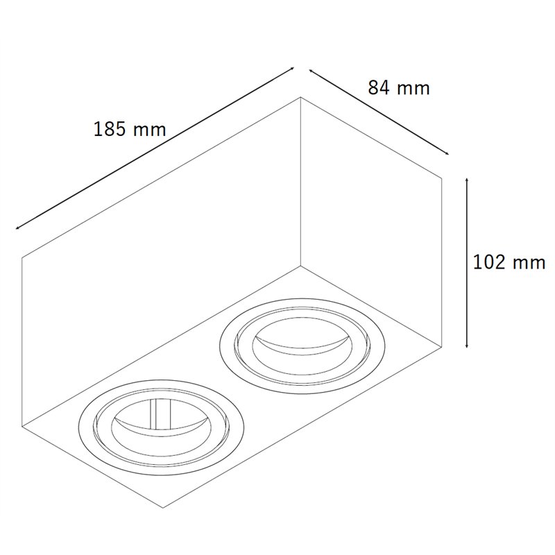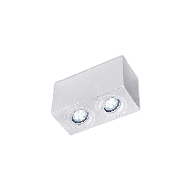 Plafonska spot lampa bele boje sa dva sijalična mesta za sijalicu tip GU10, sa mogućnošću rotiranja i podešavanja ugla osvetljenja i svetlosnog snopa u željenom pravcu.