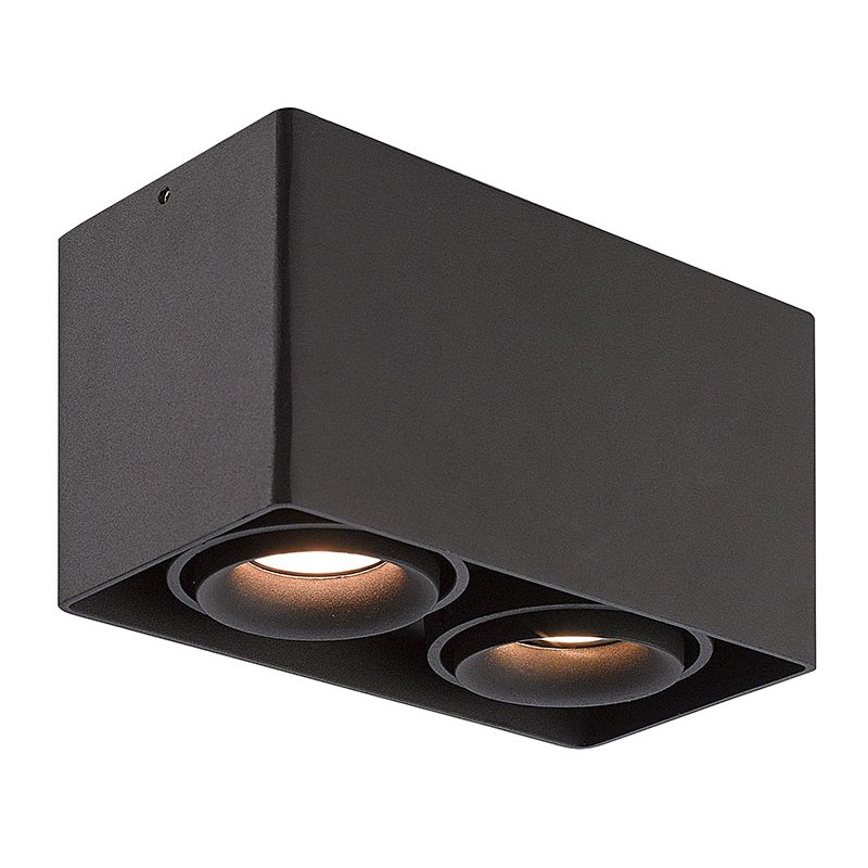 Aluminijumska plafonska spot lampa u crnoj boji sa dva sijalična mesta za tip sijalica GU10.