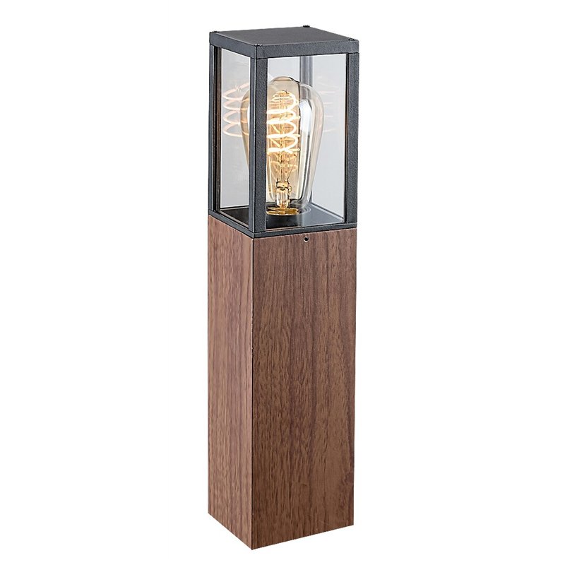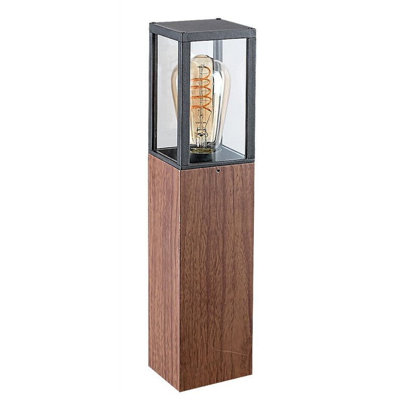 Sa svojim dizajnom sa drvenim uzorkom, spoljno svetlo u Velsu u modernom stilu savršeno se uklapa u prirodne boje vaše bašte. Providni stakleni abažur sa mat crnim okvirom postavljen je na prizmu sa drvenim uzorkom koja čini donji deo lampe. Uz pomoć Velsa možete efikasno osvetliti pešačku stazu koja vodi preko bašte ili možete staviti poseban naglasak na svoje omiljene biljke ili dodatne dekorativne elemente vaše bašte. Ovo baštensko svetlo može da se koristi sa jednom sijalicom snage do 60 V. Tip grla je E27. Spoljno svetlo ima širinu od 90 mm i visinu od 420 mm. Zaštita lampe IP44 obezbeđuje da je zaštićena od upada predmeta prečnika do 1 mm i od prskanja vode iz bilo kog smera. Vels spoljna podna lampa se isporučuje bez izvora svetlosti.