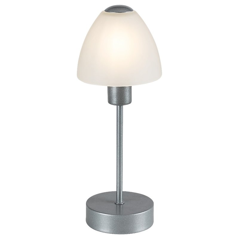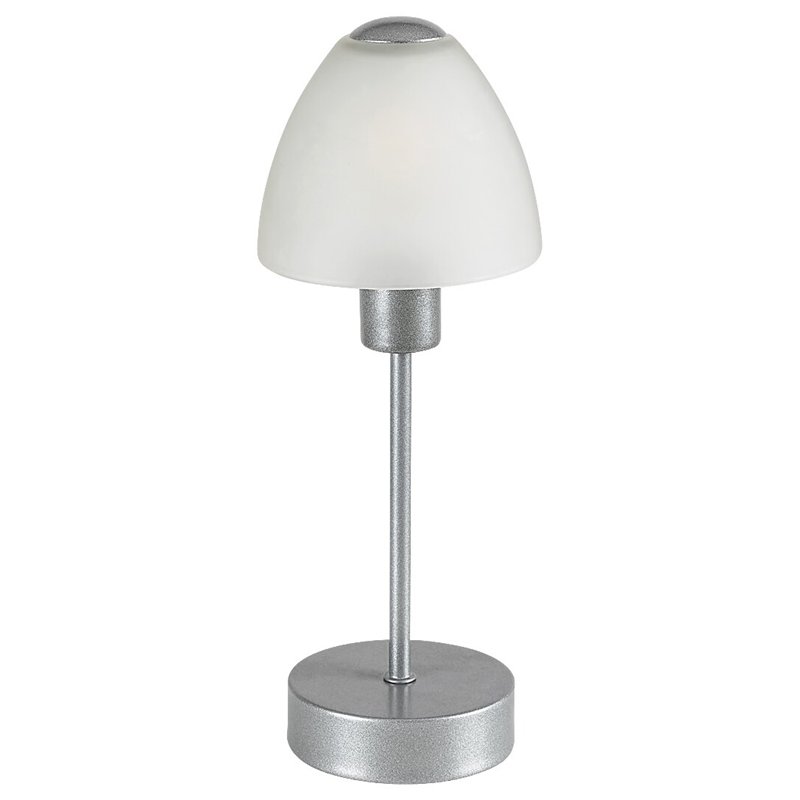 Noćna lampa LYDIA u klasičnom stilu može biti jednostavan i praktičan deo nameštaja gotovo svake spavaće sobe. Ova metalna lampa srebrne boje dopunjena je belim abažurom od stakla u obliku kišobrana i okruglom ukrasnom postoljem srebrne boje. LYDIA može da se koristi sa jednom sijalicom snage do 40W. Tip grla je E14. Ako želite da napravite ugodnu i intimnu atmosferu u spavaćoj sobi, izaberite izvor svetlosti koji zrači toplo belo svetlo za ovu lampu. Ova nocna lampa može da se priguši, odnosno njena osvetljenost moze da se podesi pomocu prekidaca na dodir (30, 60 ili 100%). Dužina kabla je 1.600 mm, visina lampe je 325 mm, prečnik 120 mm. Noćna lampa LYDIA se isporučuje bez izvora svetlosti.