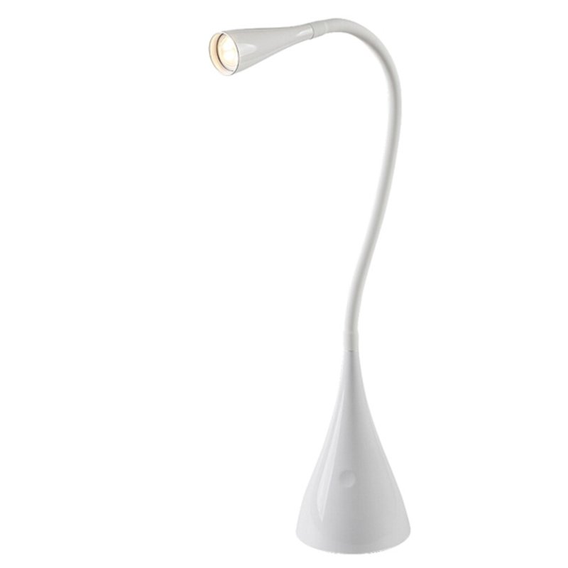 Moderno Jeff 2 pametno stono svetlo može biti praktičan izbor u dnevnoj sobi, spavaćoj ili radnoj sobi. Sjajni plastični model bele boje upotpunjen je belim metalnim abažurom, dok se vitki krak lampe završava čvrstim ukrasnim postoljem koji se širi poput suknje. Lampa ima fleksibilnu ruku koja vam pomaže da usmerite svetlo stolne lampe po potrebi. Jeff 2 ima ugrađeni LED izvor svetlosti energetske klase G sa snagom od 4 V, svetlosnim fluksom od 270 lumena sa senkom i 290 lumena bez senke, i životnim vekom od 25.000 sati. Temperatura boje izvora svetlosti je 3.000 K i shodno tome zrači toplo belo svetlo koje opušta vaše oči. Lampa se može zatamniti pomoću prekidača na dodir, odnosno njena osvetljenost se može podesiti u tri koraka (10, 40 ili 100%). Dimenzije stonog svetla su sledeće: visina 480 mm, prečnik abažura 40 mm, prečnik dekorativne osnove 110 mm, širina lampe 285 mm, dužina kabla 1.800 mm, ugao snopa 100°. Ovaj model se isporučuje bez izvora svetlosti.